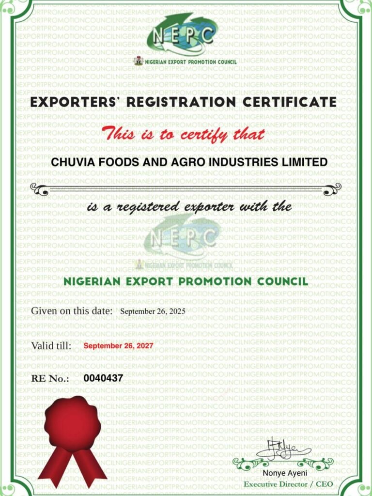 ✅ Licensed by the Nigerian Export Promotion Council (NEPC)